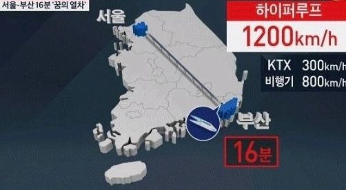 이 초고속열차 하이퍼루프는 비행기보다 빠르며, 서울에서 부산을 16분만에 도착이 가능하다고 합니다.