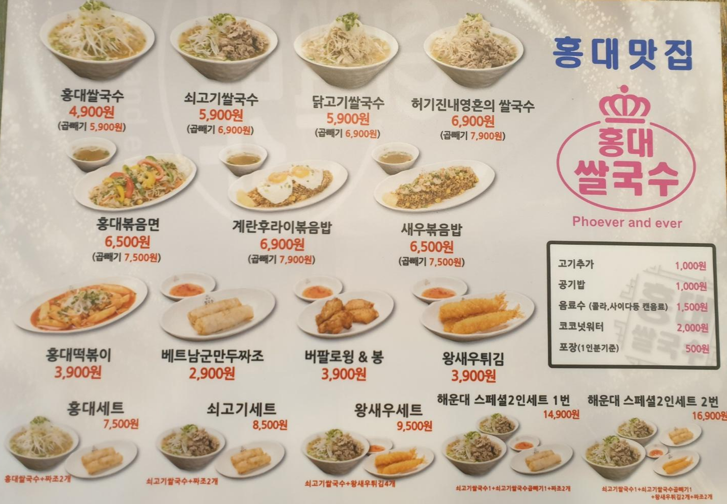 가성비 좋은 홍대쌀국수 메뉴, 가격 확인이 도움이 되었으면 좋겠구요, 근처에 홍대쌀국수 매장있으면 한번 들러서 드셔보시는것도 좋을것같아요.
