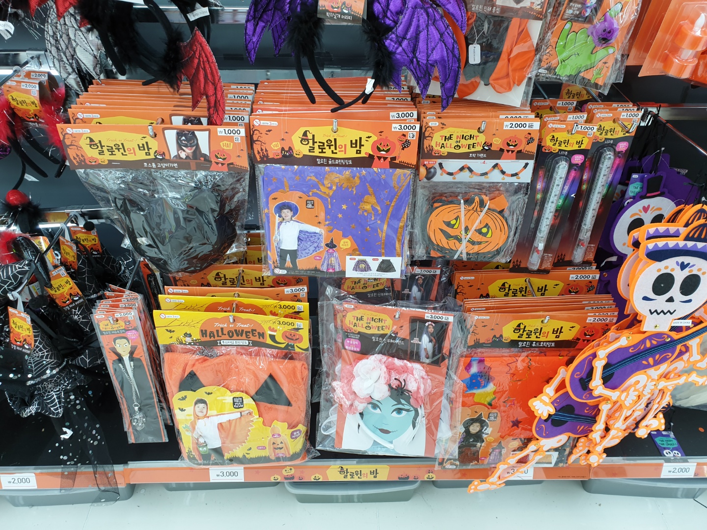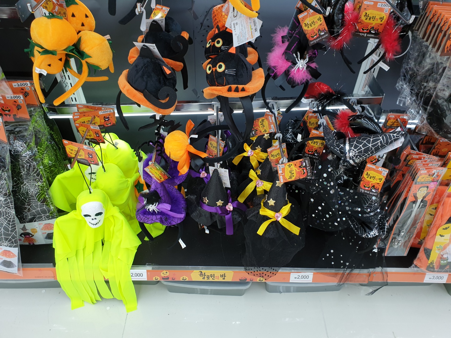 다이소에 판매중인 할로윈 소품 가격은 1천원 부터 형성되어 있더라구요. 1천원부터 5천원까지 가격대였구요,