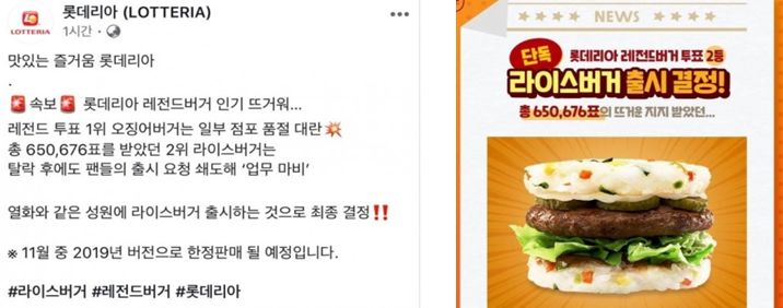 롯데리아 레전드버거 인기 투표 2위였던 라이스버거가 11월 중으로 2019년 버전으로 한정판매가 될 예정이라고 합니다.