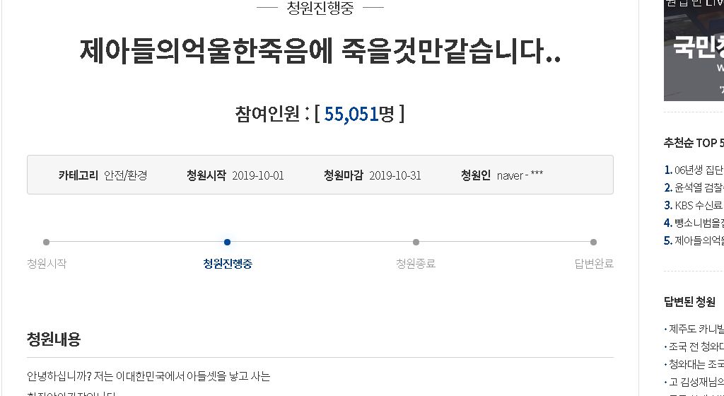 지난달 9월11일 충남 아산에 어린이 보호구역 즉 스쿨존에서 9살 어린이가 교통사고로 숨지는 일이 발생 하였습니다. 이 사고로 사망한 9살 김민식 어린이의 유족은 청와대 국민청원에는 스쿨존 사고 발생 시 처벌 강화 요청과, 스쿨존 구역 안전 강화에 대한 국민청원글을 작성하였으며, 현재 5만여명이 동의를 하였고, 더불어민주당 강훈식 의원은 11일 도로교통법 일부개정법률안, 특정범죄 가중처벌 등에 관한 법률 일부개정법률안을 발의 하였습니다.