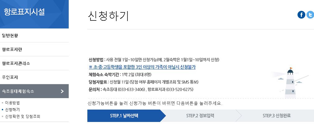 자세한 내용 및 신청은 위 동해지방해양수산청 홈페이지 속초 등대 체험 숙소 무료 신청하기에서 확인하시면 된답니다.