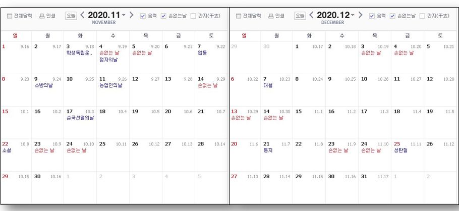 2020년 11월 손없는날은 4일, 5일, 14일, 23일, 24일 입니다.
