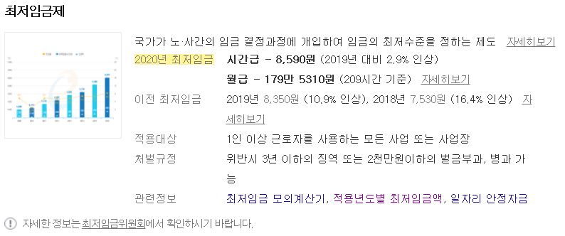 2020년 최저임금 8,590원 2019년 대비 2.9% 인상