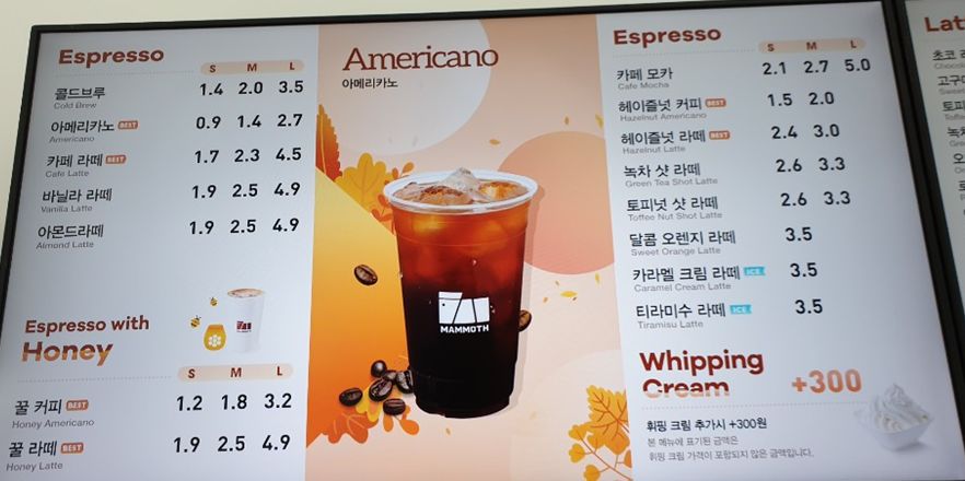 요즘 엄청 많은 커피 프랜차이즈들이 있는데요, 오늘은 매머드 커피 메뉴, 가격 알아보도록 할게요.