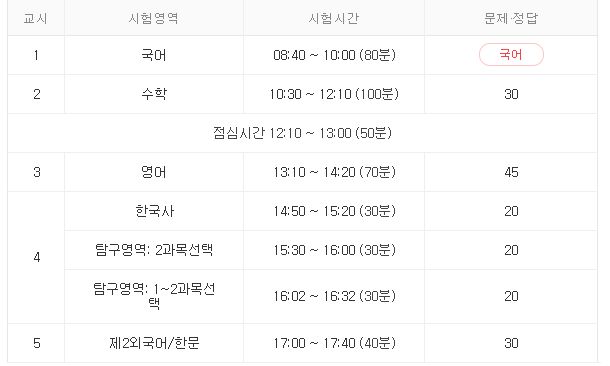 수능 시간표
