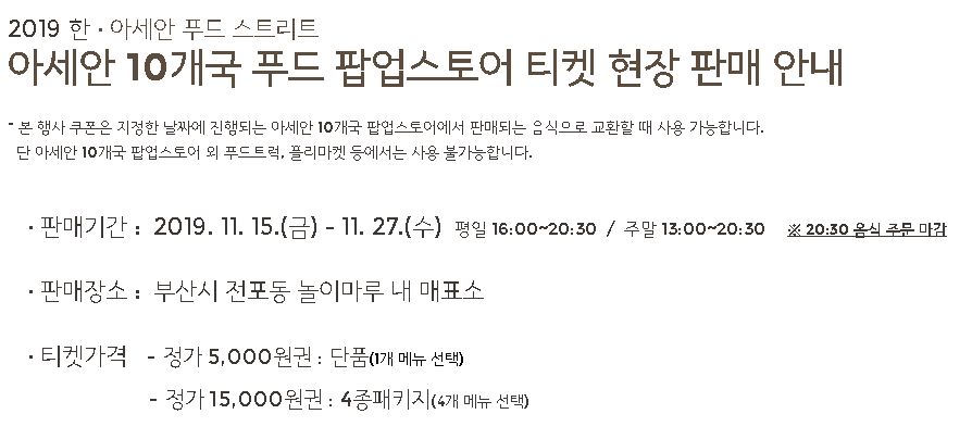 부산 한 아세안 푸드스트리트는 전포동 놀이마루에서 진행되며, 푸드 팝업스토어다 보니 유료로 진행됩니다.