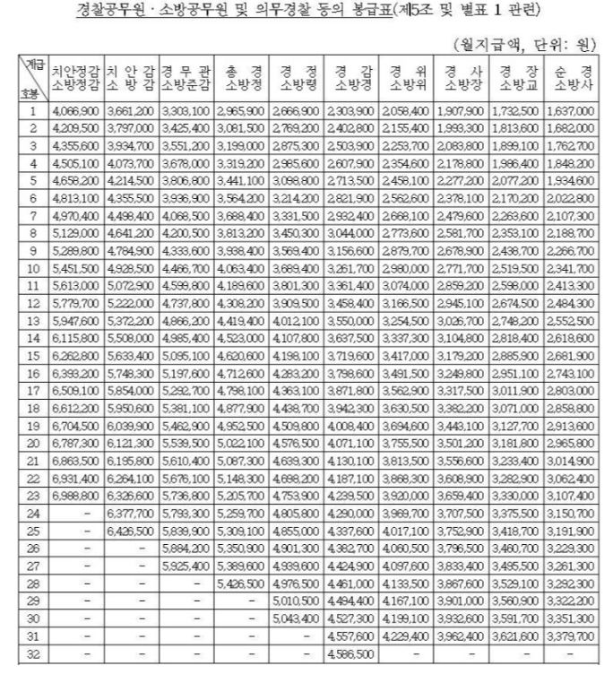 경찰공무원 봉급표 2020년