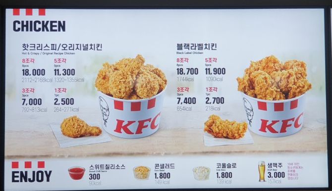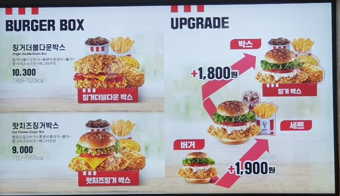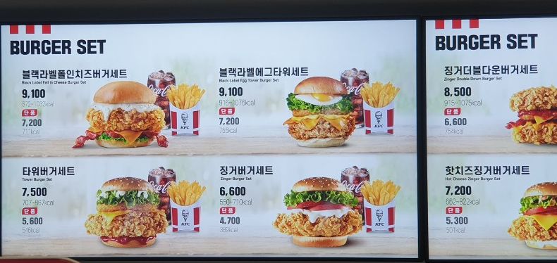 kfc 메뉴가격, 메뉴판