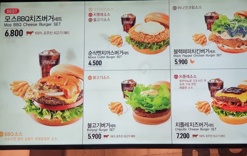 모스버거는 대체로 홈플러스, 롯데백화점 내부에 매장이 있으며, 모스버거 메뉴 가격은 메뉴판으로 확인하세요.