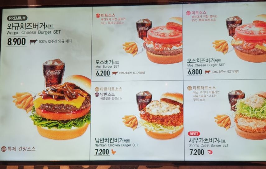 모스버거 메뉴 가격