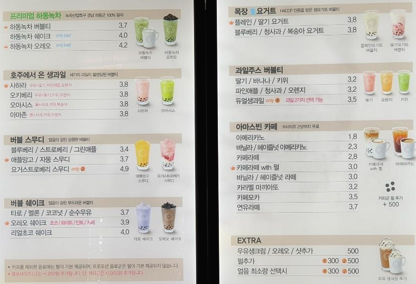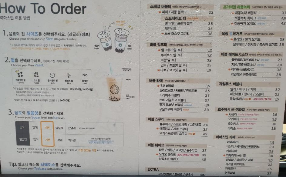아마스빈 버블티 메뉴, 가격 확인하시고 즐거운 티타임 되시길 바랄게요.