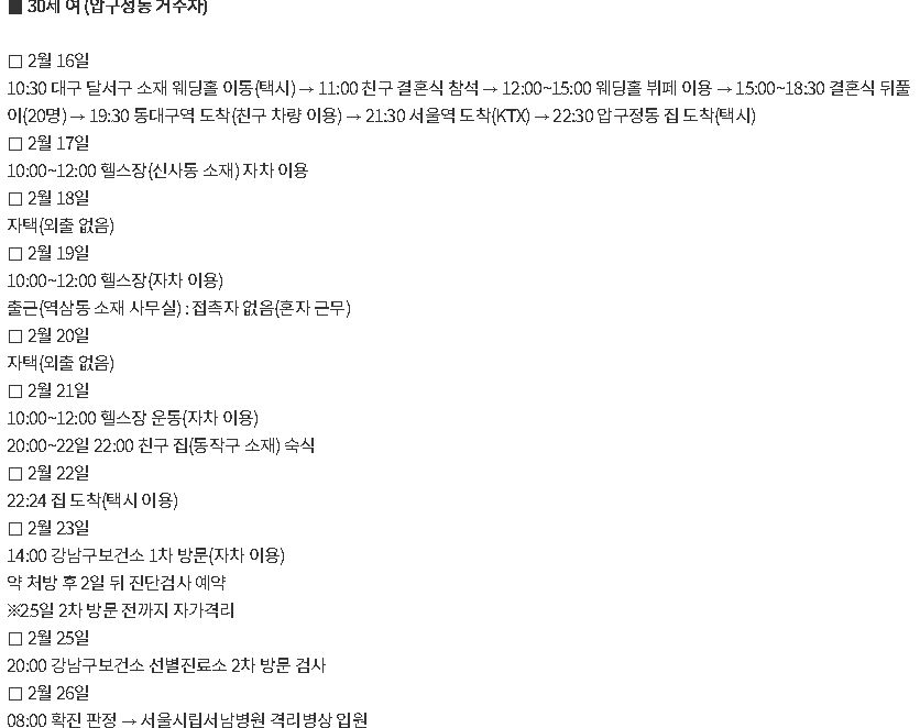 강남구 코로나 확진자 동선 - 30세 압구정동 거주자