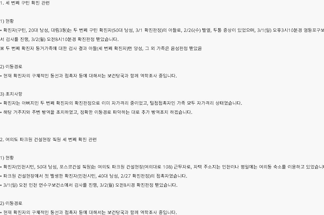 영등포구 홈페이지에서는 구민 확진관련 내용 및 여의도 파크원 건설현장 직원 확진 관련에 대한 내용이 확인 가능합니다.