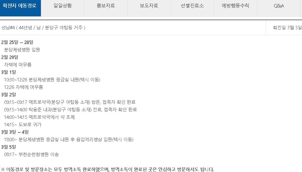 성남시에서는 코로나 확진자 동선을 성남시 홈페이지에 공개중이며, 현재 성남 4번째 코로나 바이러스 확진자 동선까지만 확인이 가능합니다