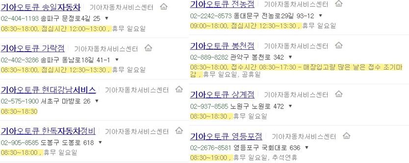얼마전 기아자동차 내비게이션 업데이트가 되지 않아 서비스센터 기아 오토큐 예약없이 방문하게 되었는데, 다른 부품 교환건이 있어 시간이 좀 걸렸고, 찾으러 갔을때는 시간이 너무 늦었는지 영업시간 접수 마감이라 그런지 돌아가시는분을 보고 기아자동차 서비스센터 기아 오토큐 영업시간 안내하고자 정보 가지고 왔어요.