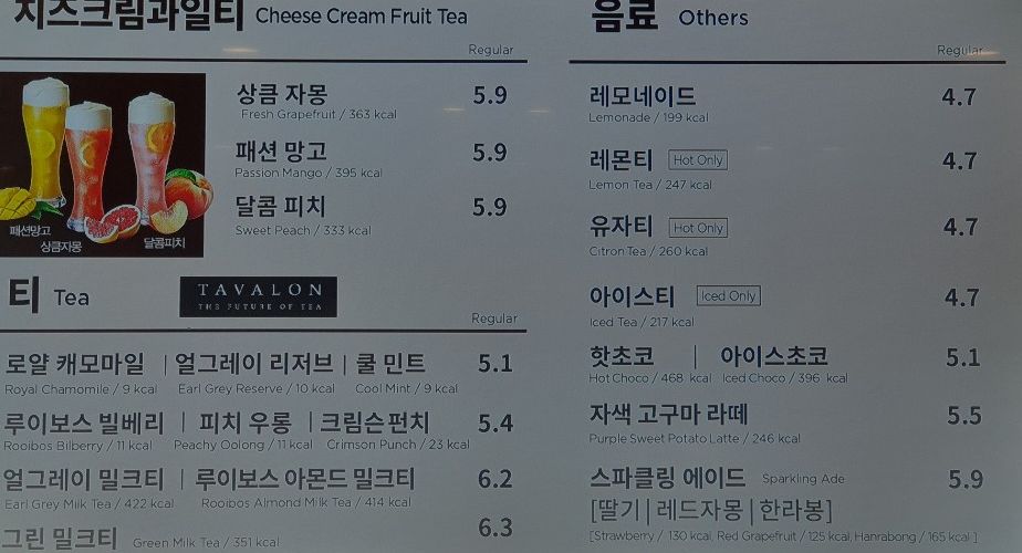 엔제리너스 커피 메뉴 외, 엔제린스노우 스무디, 프라페 종류와 치즈 크림 과일티, 레모네이드, 고구마 라떼, 핫초코, 에이드 등 다양한 메뉴가 있으니 카페인이 싫다면 엔제리너스 커피 메뉴 외 다른 엔젤리너스 메뉴들도 한번 살펴보세요.