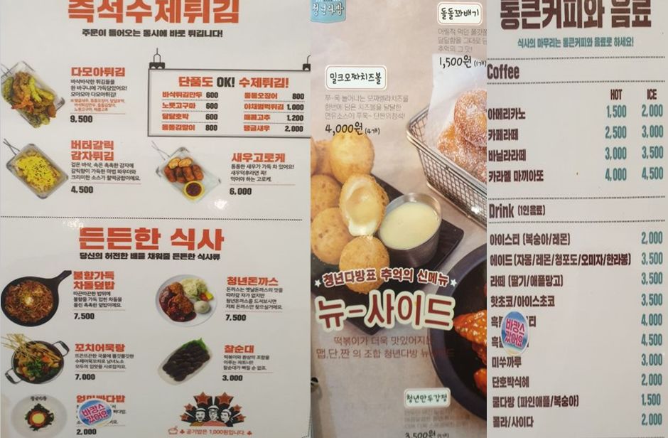 청년다방 메뉴 가격 확인하시고 맛있는 식사 시간 되시길 바랄게요.