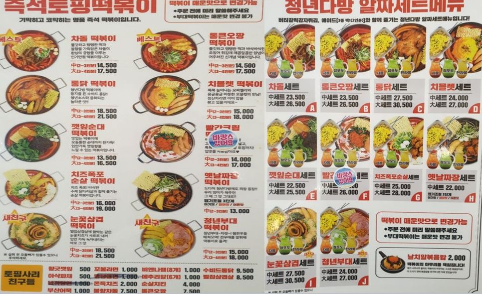 청년다방 메뉴 가격, 차돌 떡볶이