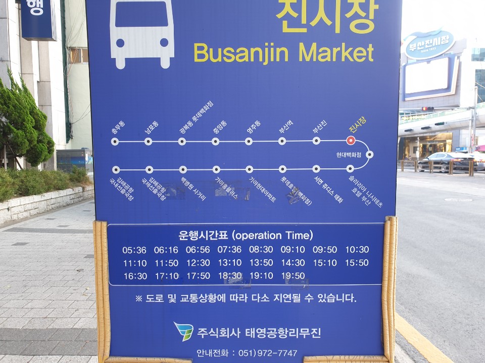 김해공항 리무진버스 시간표 서면, 남포동 방면이며 제가 사진을 가지고 온곳은 진시장 입니다.