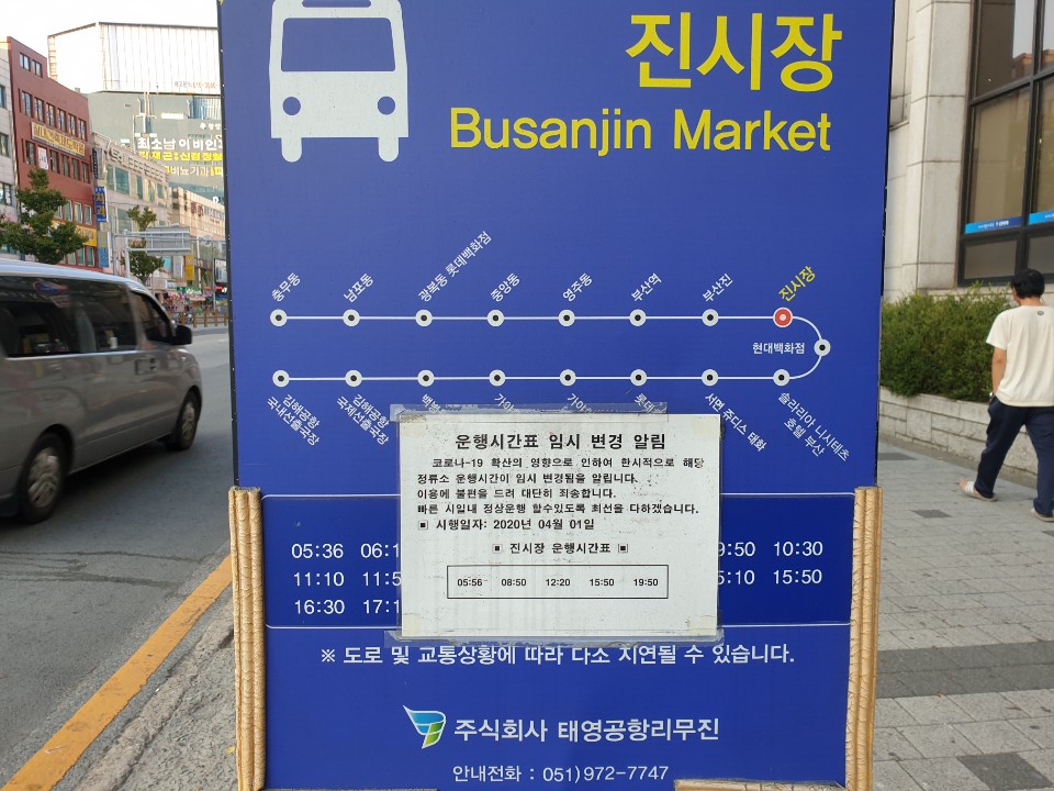 코로나 때문에 국제선 이용이 없어 한시적으로 일부 김해공항 리무진버스 정류소에서 운행시간 임시 변경이 많더라구요.