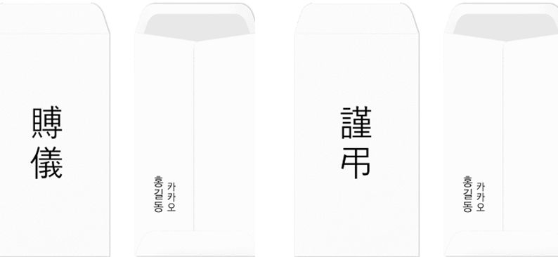 요즘 장례식장에는 봉투가 거의 100% 준비되어 있으며, 비치된 봉투에 대부분 부의나 조의 등의 한자가 기재되어 있기 때문에 이름이나 소속 정도만 작성하면 됩니다.