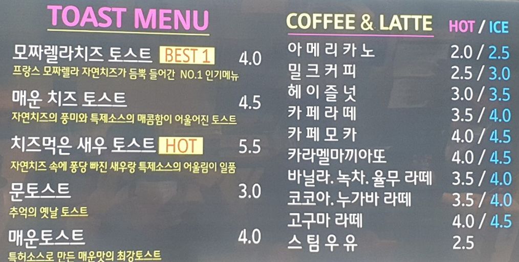 부산 송정 문토스트 메뉴와 가격에 대하여 알아보겠습니다.