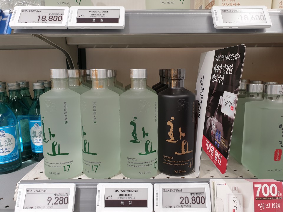 제가 대형마트 이마트에 방문했을때는 화요 17도 375ml 용량 가격은 9,280원, 화요 25도 375ml 용량의 가격은 품절이라 확인할 수 없었습니다.