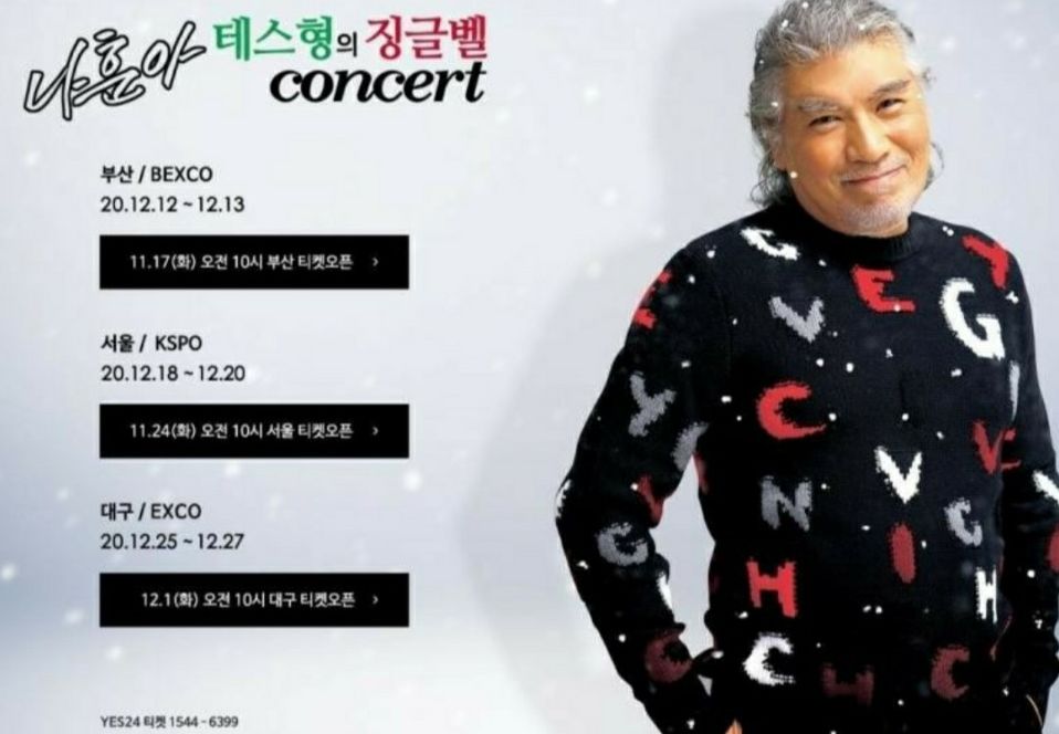나훈아 대구 콘서트는 2020년12월25일~27일 대구 엑스코(EXCO)에서 진행되며 12월1일(화) 오전 10시 yes24티켓에서 예매가 오픈됩니다.