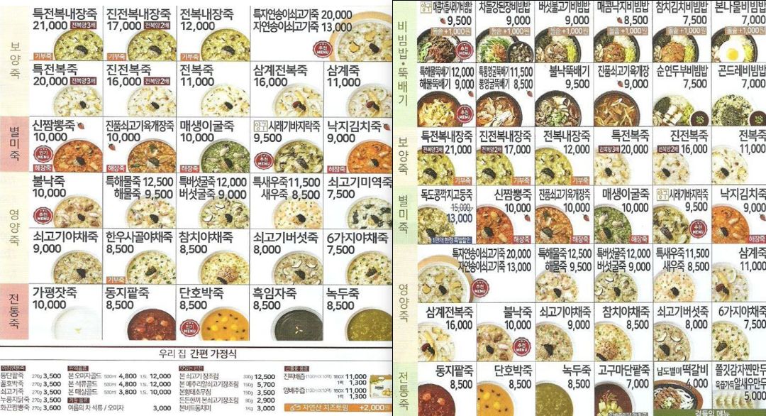 본죽 메뉴 추천, 메뉴판 가격