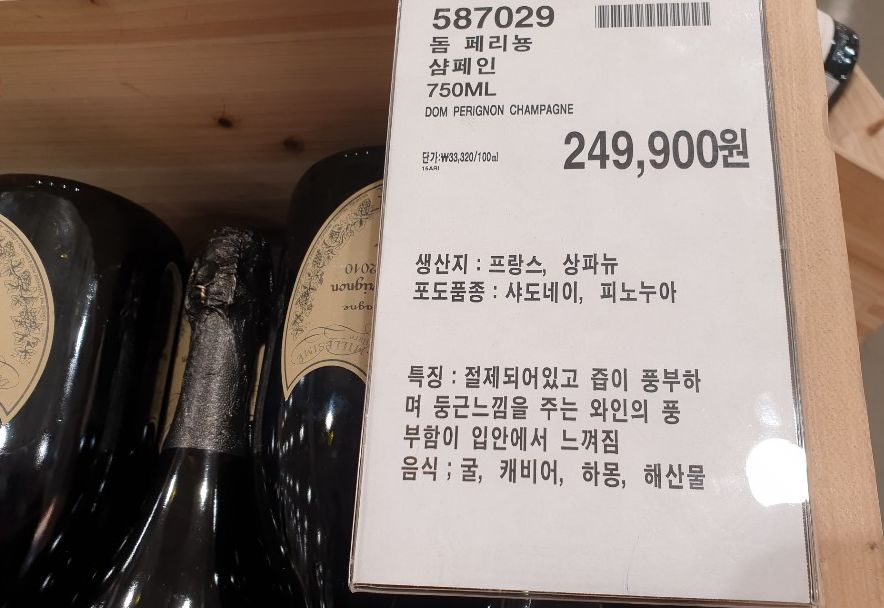 제가 돔 페리뇽 가격 사진을 찍어온 곳은 바로 코스트코이구요, 전국에 매장마다 돔 페리뇽 가격이 상이할 수 있으니 참고용으로만 확인하시는 것이 좋을 것 같아요.