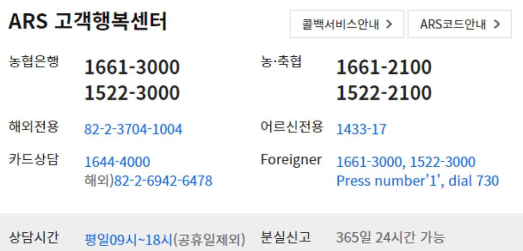 농협은행 잔액조회 전화번호 : 1661-3000 , 1522-3000이며