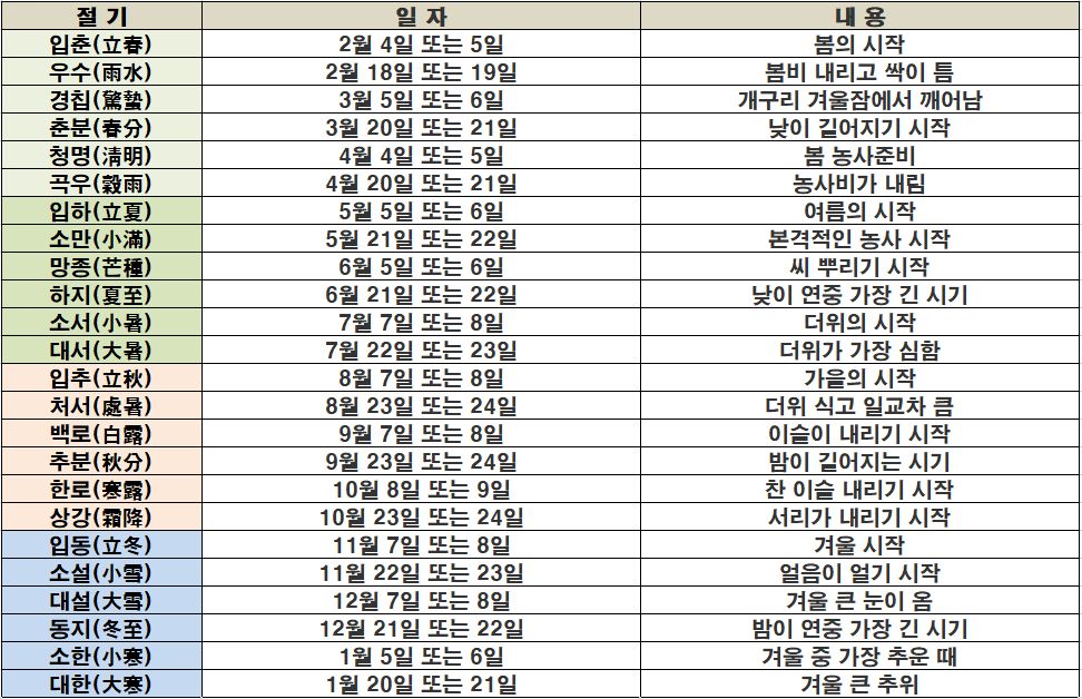 24절기 중 일곱 번째 절기로 곡우와 소만 사이의 절기를 입하라고 하며, 양력으로 5월5일 또는 6일 무렵으로 음력으로는 4월이며 태양의 황경이 45도에 이르렀을때를 입하라고 합니다.