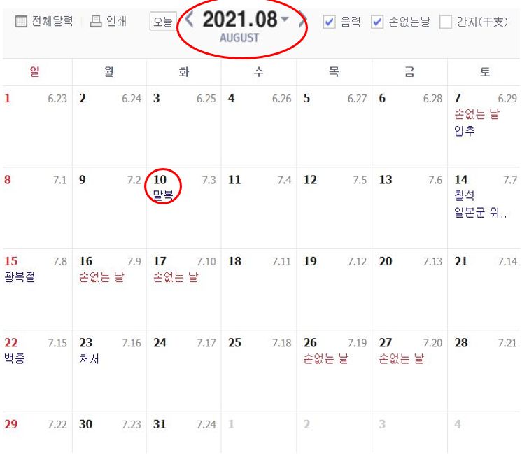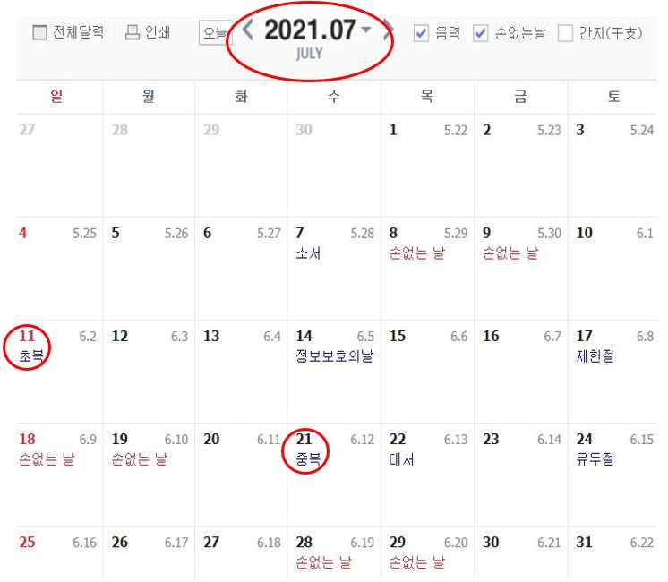 2021년 초복 중복 말복 날짜