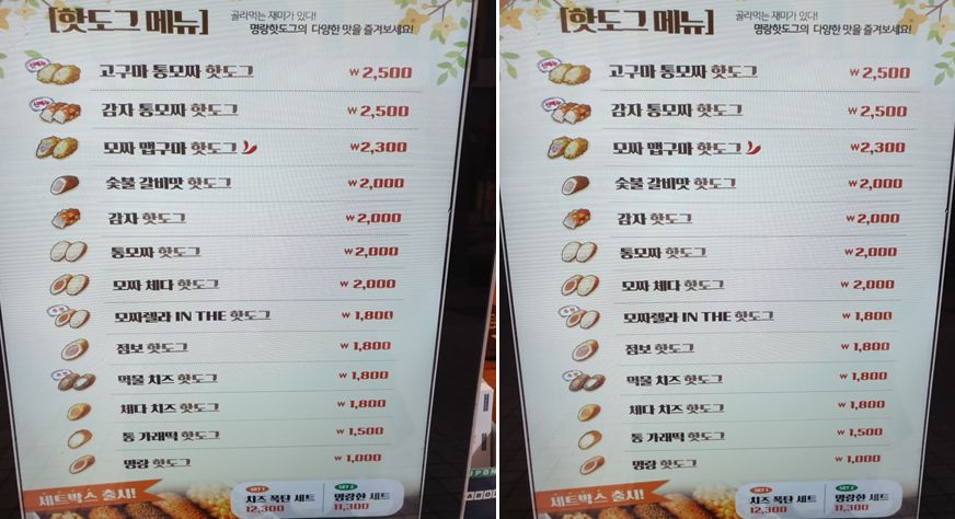 명랑 핫도그 메뉴, 가격