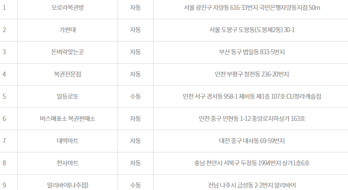 855회 로또당첨번호 당첨지역