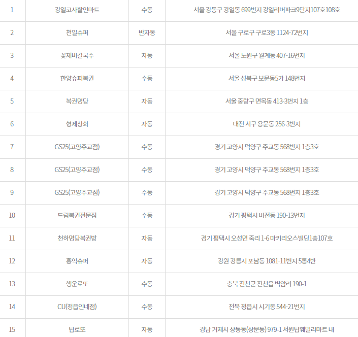 857회 로또복권 당첨번호 1등 당첨지역 총 15명중에 수동 당첨자가 8명, 반자동이 1명, 자동 6명인데요, 수동 당첨지역 3장이 같은곳에서 나왔더라구요. 완전 대박인듯 12억씩 3장 후덜덜 하네요. ㅎㅎㅎㅎ