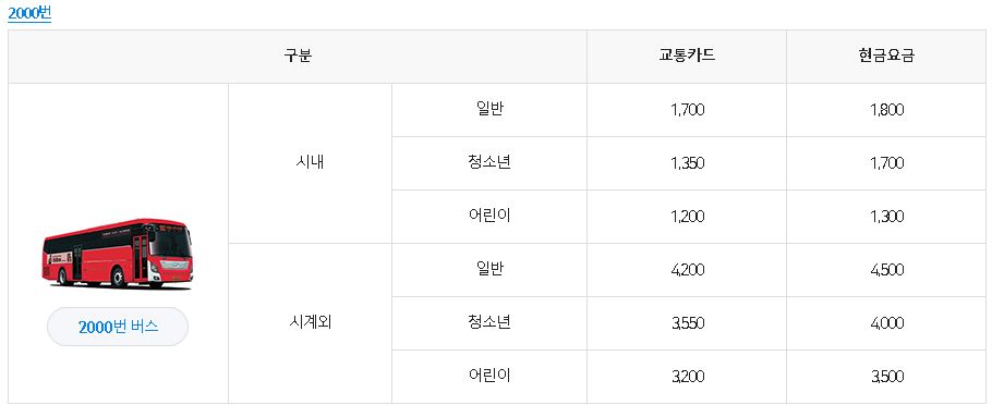 마지막으로 2000번대 부산 버스 요금입니다.
