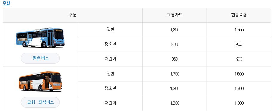 부산 시내버스 요금표