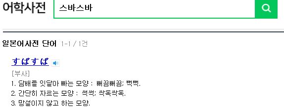 스바스바 뜻은 일본어로 すばすば 마시거나 빨거나 하는 모양을 뜻하는 일본어이다.