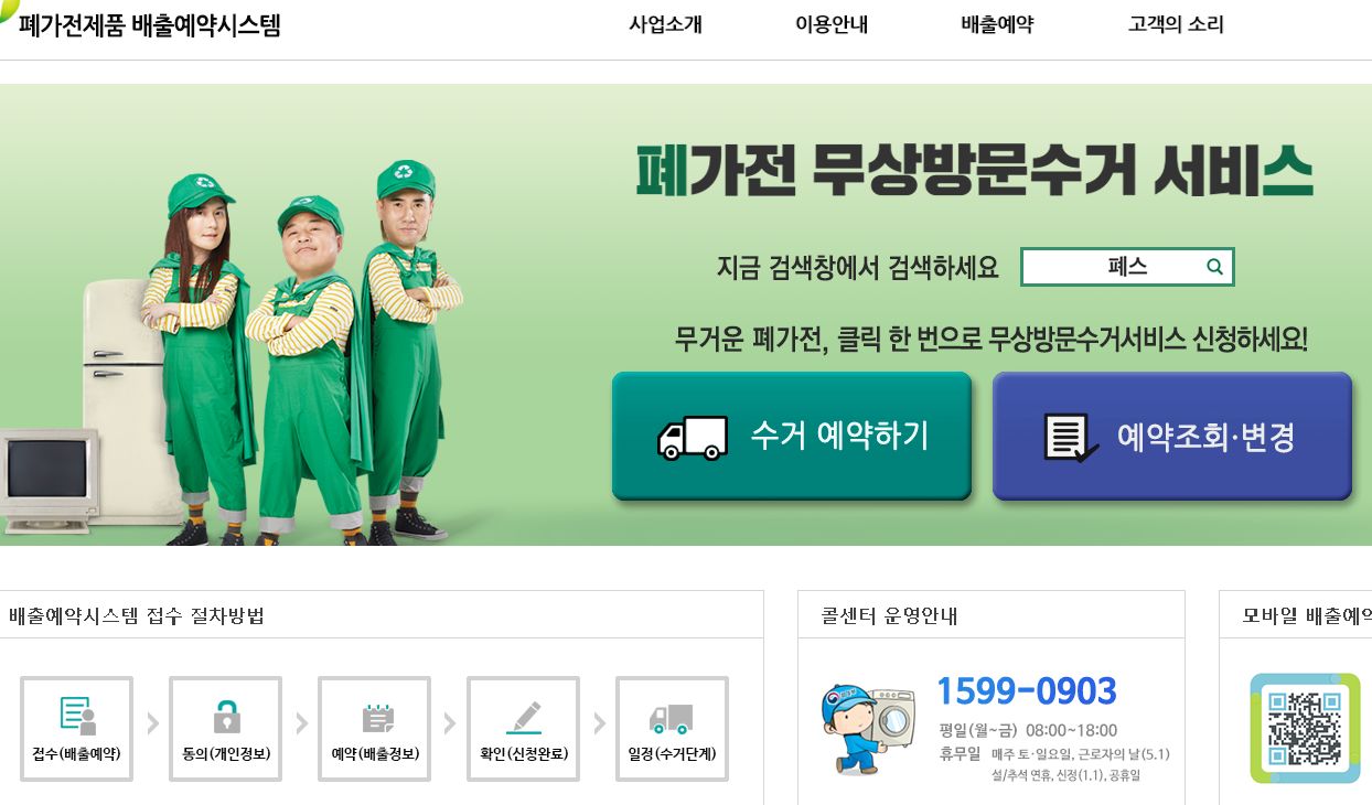 집에 오래된 폐가전제품들이 몇몇 보여서 바꿔줘야 될 때가 된 것 같더라구요. 이사날짜도 다가와 어떻게 버릴까 고민하며 찾아보니 인터넷에 정부에서 실시하고 있는 폐가전제품 무상 방문수거 서비스를 알게 되었답니다.