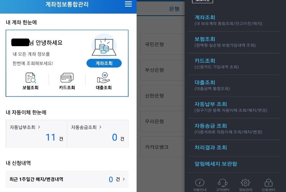 보험조회, 카드 조회, 대출조회, 자동납부조회, 포인트 조회 등, 휴면계좌 조회 통합조회 시스템에서는 다양한 서비스 확인이 하답니다.