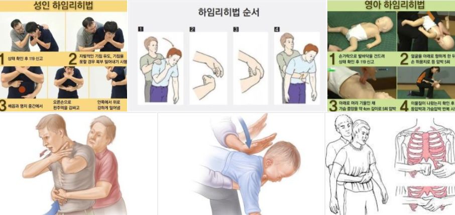 하임리히법은 성인, 아기, 소아 등에 따라 하는 방법이 다르며,