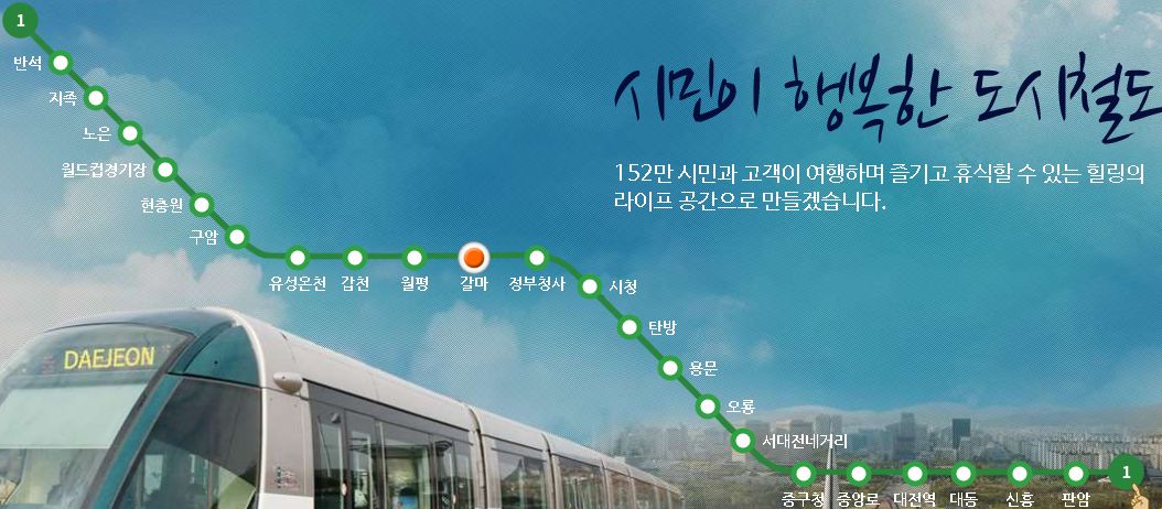 곧 대전 지하철 2호선과 3호선? 도시철도 트램이 개통될 예정이라고 하는데요, 2호선 개통 예정 노선은 유성온천(충남대,목원대) - 충남대 - 엑스포 과학공원 - 정부청사 - 둔산 - 농수산물시장 - 오정 - 중리네거리 - 복합터미널 - 가양 - 자양 - 대동(우송대) - 한밭종합운동장 - 대사 -서대전네거리 - 서대전역 - 유천 - 도마네거리 -정림 - 가수원네거리 - 관저 - 진잠 - 대정 - 학하 - 목원대 -원신흥 입니다.