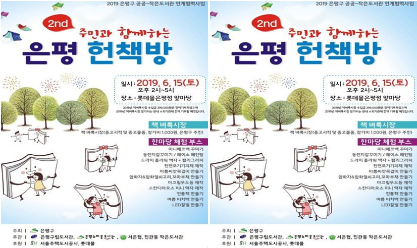 2019년 6월15일(토) 오후 2시 - 5시 롯데몰 은평점 앞마당에서 책 벼룩시장이 진행된다는데요,