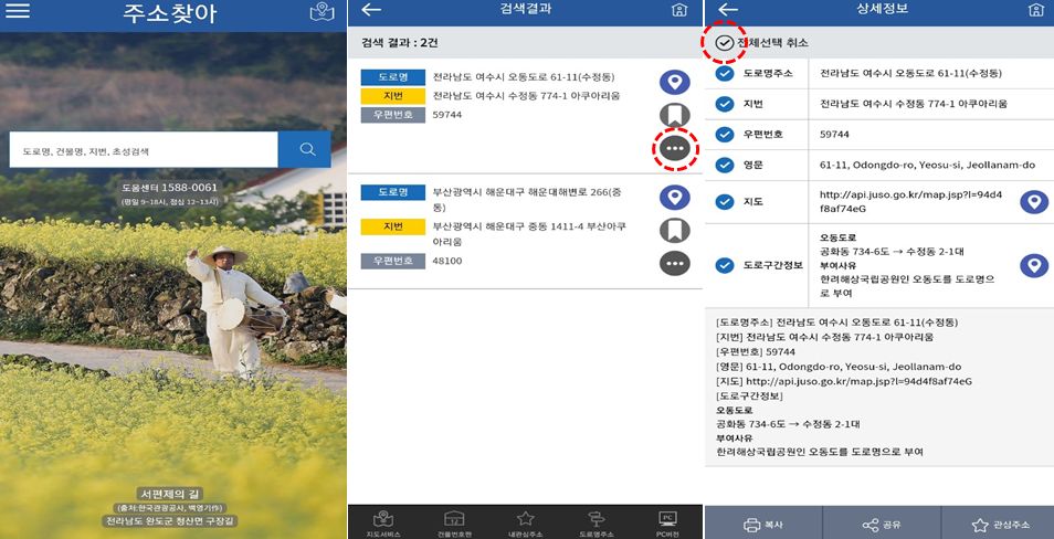 주소찾아 앱(어플)에서는 우편번호 검색, 지번주소로 도로명주소 찾기 등 간편하게 확인, 복사, 공유까지 할 수 있어서 좋은 것 같아요.