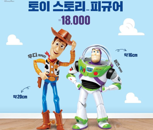 이번 롯데리아 토이스토리 피규어 크기는 우디는 20cm, 버디는 16cm 로 1인당 최대 2개까지 구매가 가능하며 가격은 각각 18,000원 씩 입니다.