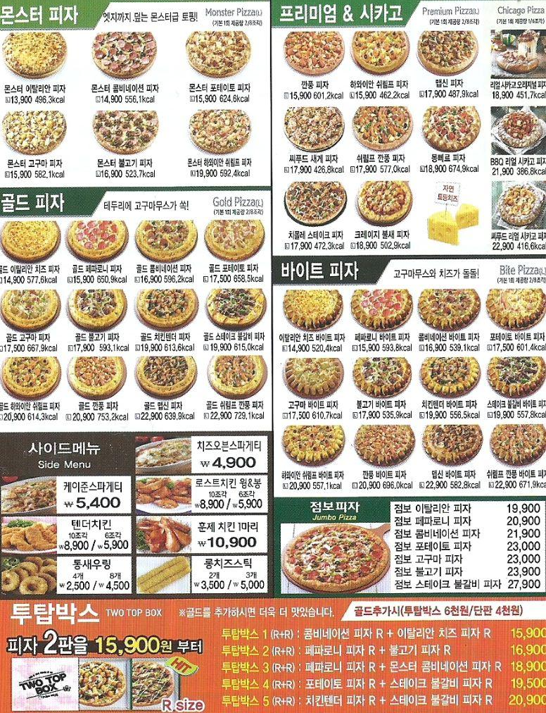 제가 등록한 사진은 피자마루 배달 가격이구요, 일부 매장 카페형, 제주, 강화지역 등의 경우에는 메뉴 구성이나, 가격이 다를 수 있다고 하니 참고해주세요.