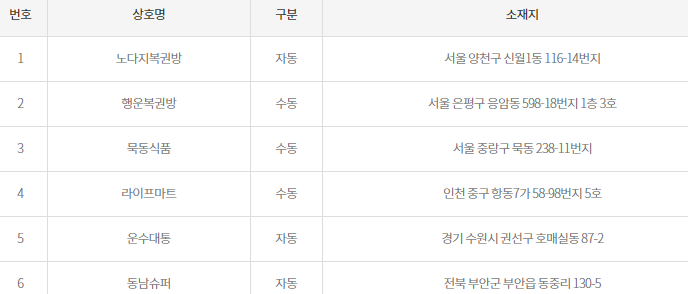 868회 로또당첨지역은 서울 양천구 신월동에서 자동, 서울 은평구 응암동에서 수동, 서울 중랑구 묵동에서 수동, 인천 중구 항동에서 수동, 경기 수원시 권선구 호매실동에서 자동, 전북 부안군 부안읍에서 자동으로 868회 로또당첨지역은 자동 3곳, 수동 3곳으로 각각 다른지역에서 868회 로또당첨지역이 나왔답니다.
