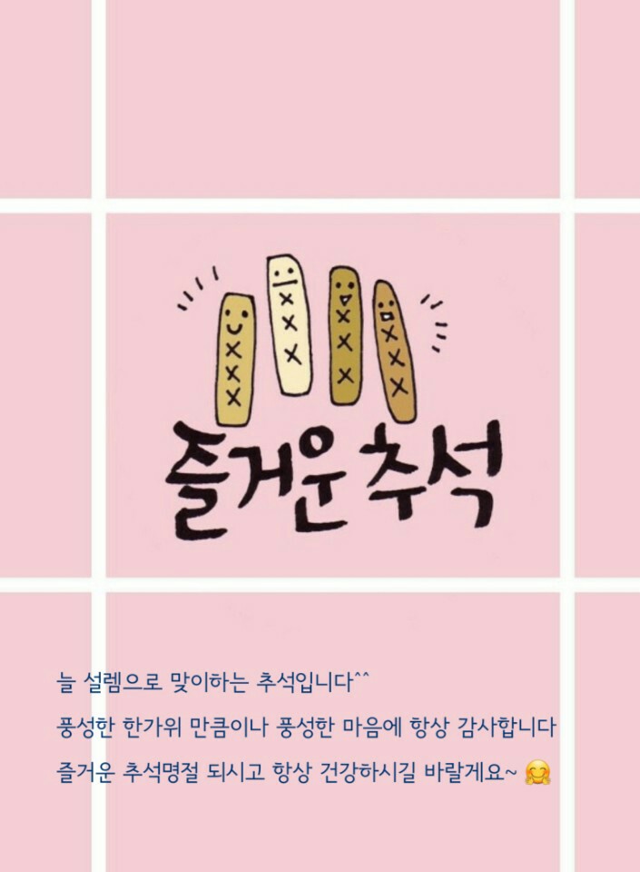 우리 민족 고유의 명절 한가위입니다. 따뜻하고 풍성한 마음으로 가족 친지들과 함께 즐겁고 훈훈한 추석 연휴 되시길 바랍니다.